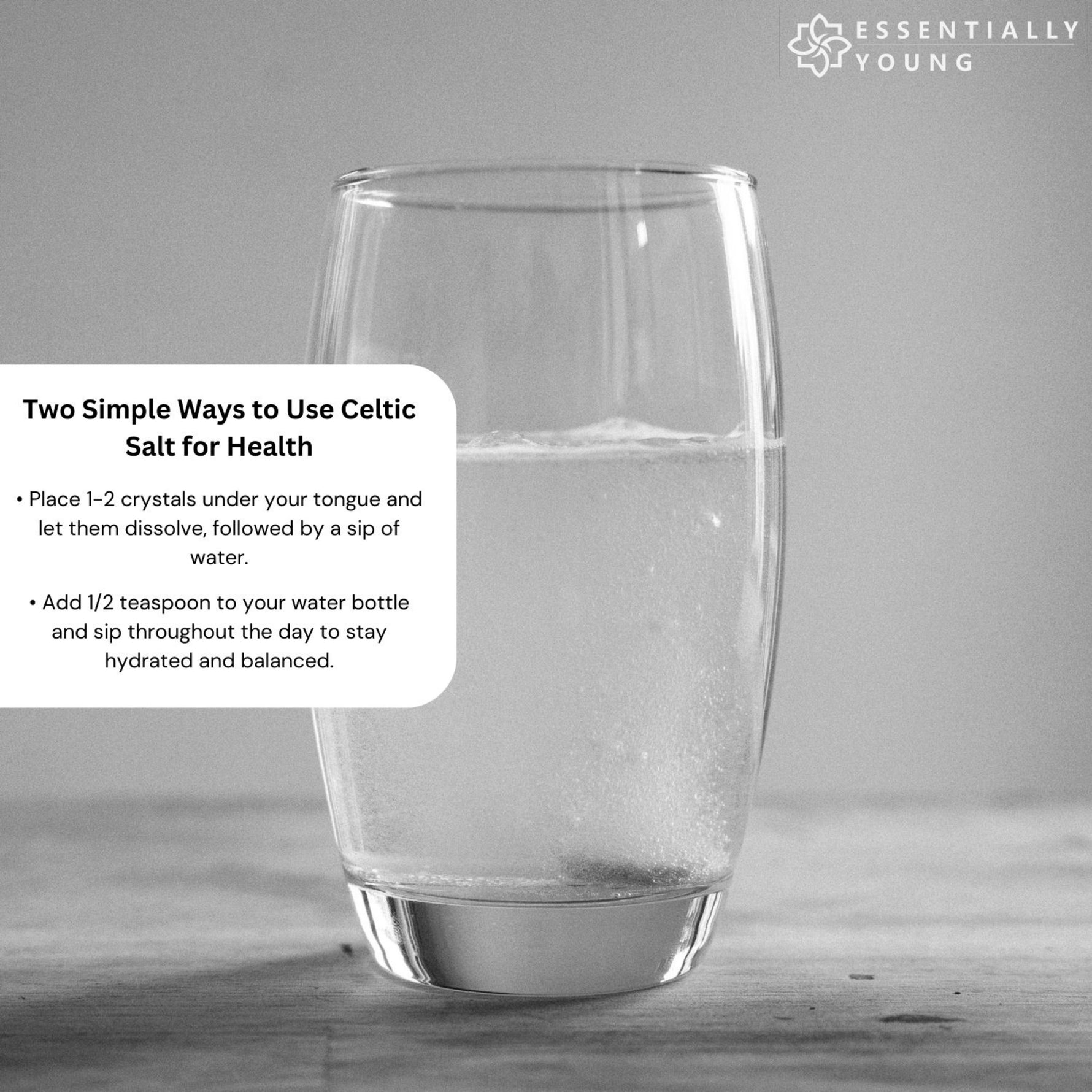 You can use Celtic Sea Salt for a detox bath, a relaxing foot soak, as a skin exfoliant, or even as a natural flavor enhancer in cooking.
