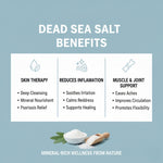 Dead Sea Salt is rich in magnesium, calcium, and potassium, which help hydrate the skin, soothe muscle tension, detoxify the body, and promote relaxation. It is also known for improving skin conditions like eczema and psoriasis.