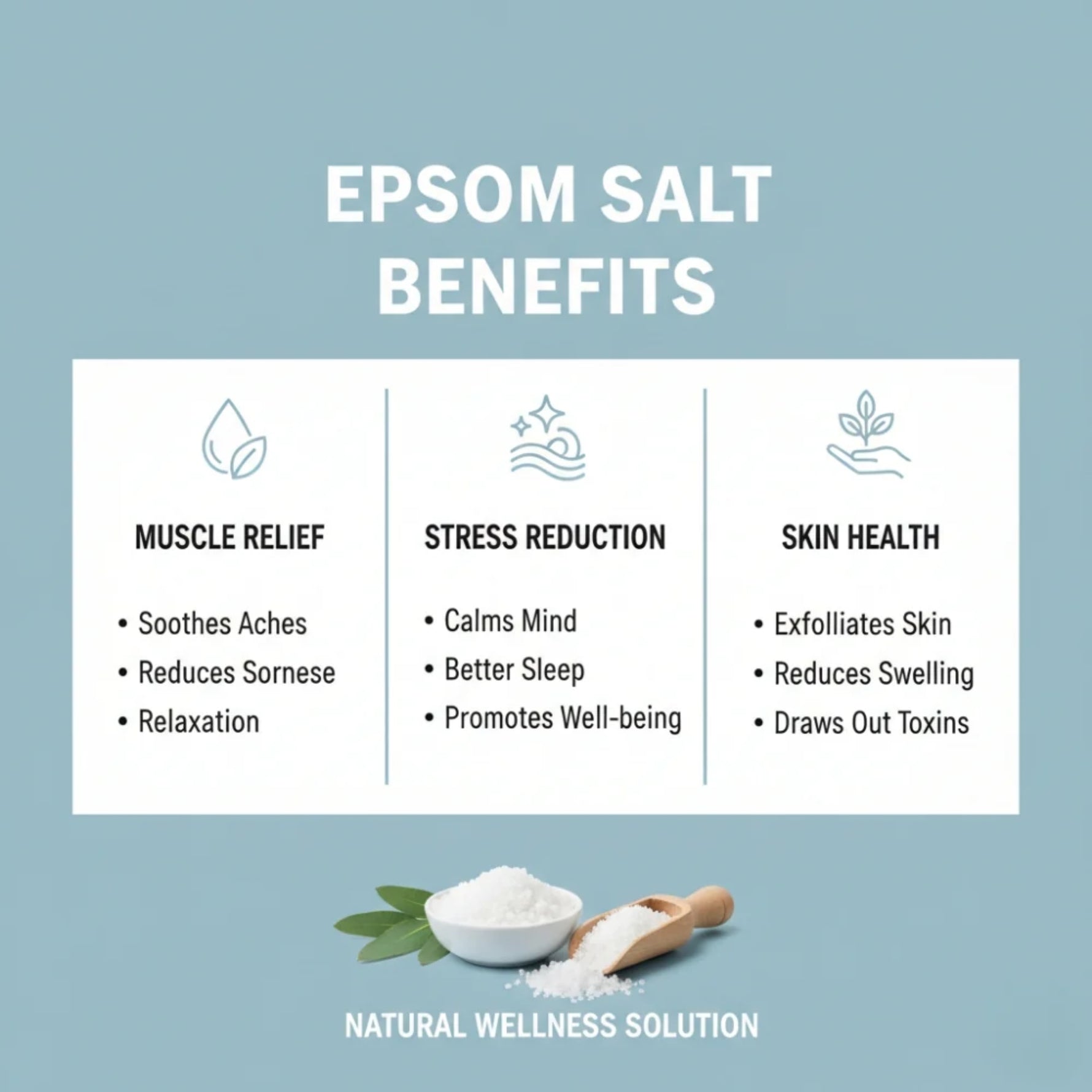 🌿 For a Relaxing Bath: Add 1–2 cups of Epsom Salt to warm water and soak for 20–30 minutes to relieve stress and muscle tension.