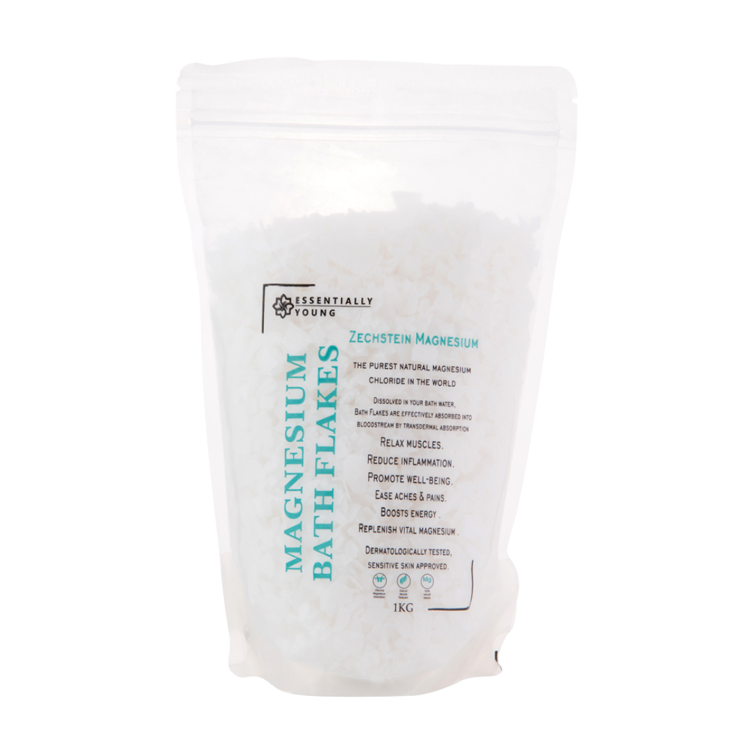Highly concentrated magnesium chloride flakes, easily absorbed through the skin to relieve muscle cramps, improve sleep quality, and support overall relaxation.