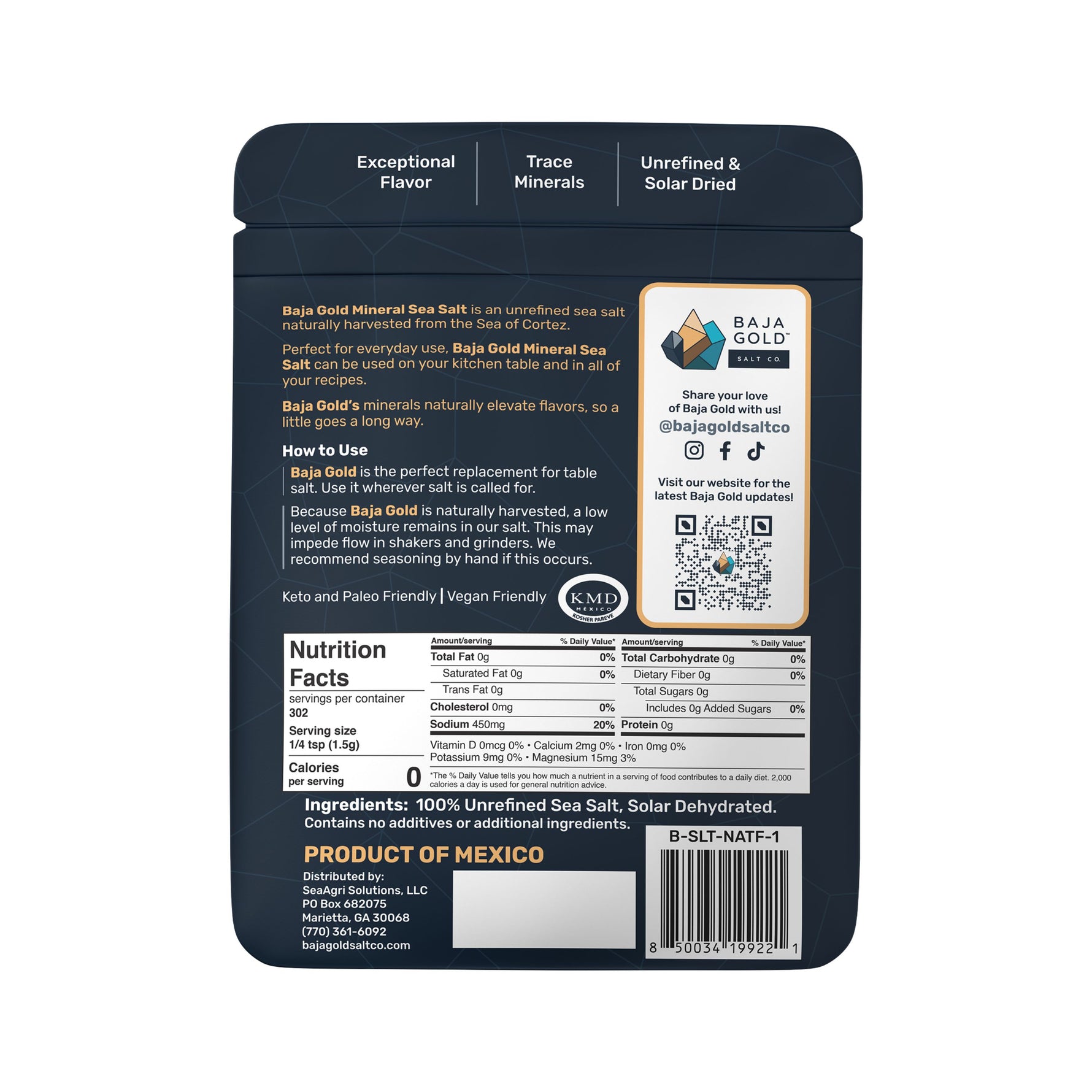 Unlike processed salts that are stripped of their nutritional value, Baja Gold preserves the ocean’s natural moisture and mineral content for a more vibrant taste and better texture. It’s certified Kosher and fully compatible with modern lifestyles including Keto, Paleo, Vegan, Gluten-Free, and GMO-Free diets. Whether you’re seasoning roasted veggies, grilling steak, or making a homemade brine, this sea salt adds depth and vitality to every bite — naturally.